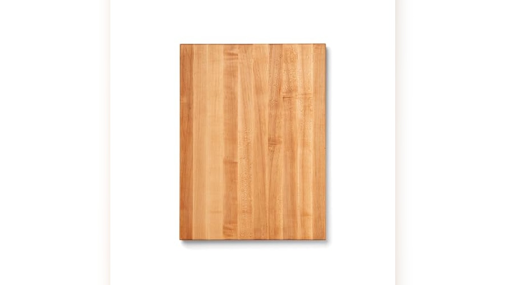 This cutting board feels very strong and heavy. It stays steady on the counter while I cut vegetables. The juice groove keeps my kitchen clean by catching extra liquid. Reversible sides make it easy to use for different tasks. Finger grips help me carry it without slipping. The maple wood looks nice and lasts a long time. Made in the USA, it shows good quality. Perfect size for most kitchen jobs. Easy to clean and does not warp. A solid choice for anyone who cooks often.