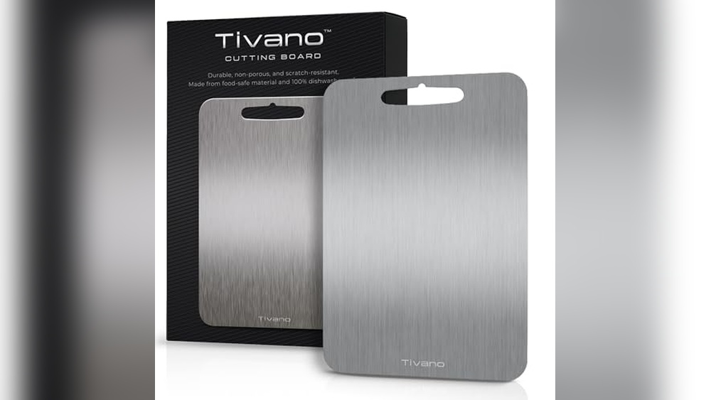 Tivano TitaniumShield Cutting Board offers strong and lasting use for everyday kitchen tasks. Its metal design resists heat, stains, and odors, keeping it fresh and clean. Easy to wash in the dishwasher, it saves time and effort. The board is gentle on knives, helping them stay sharp longer. Safe and non-toxic, it fits well in any home kitchen.